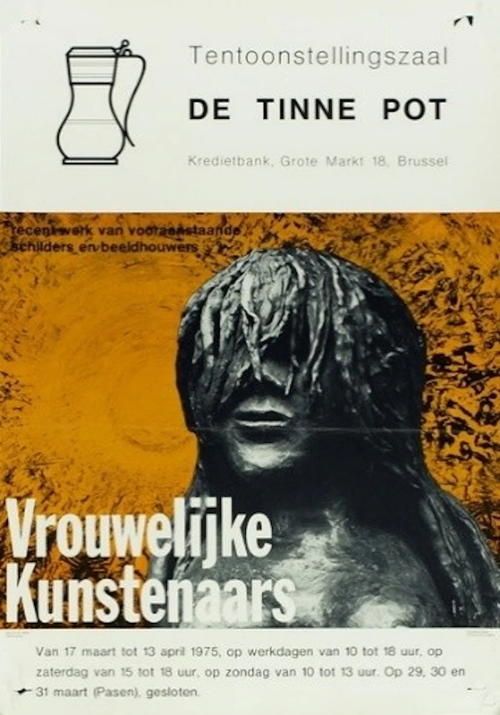 Affiche tentoonstelling met vrouwelijke kunstenaars in tentoonstellingszaal De Tinne Pot in Brussel. Collectie Stad Antwerpen, Letterenhuis.